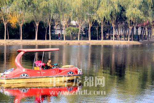 ????時(shí)值初冬,周口人民公園內(nèi)爛漫秋色還未褪去,紅楓、銀杏等樹葉,紅似火、黃如金,色彩斑斕,組成了如詩如畫的美景。人們置身其中,其樂融融。葛英 攝