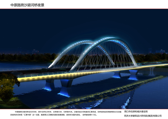 這次集中開工的14座橋梁,包含中原路跨沙潁河橋新建工程,流沙河大成路橋、洼沖溝政通路橋、洼沖溝人和路橋、流沙河騰飛路橋新建工程,以及9座老橋梁景觀改造工程,均位于城市主次干道的重要節(jié)點,總投資5.6億元。其中,新建的中原路跨沙潁河大橋是其中最大的工程,橋長837米,橋?qū)?5米,建安費投資估算4.2億元,建成后,沙潁河南北通行更加順暢。