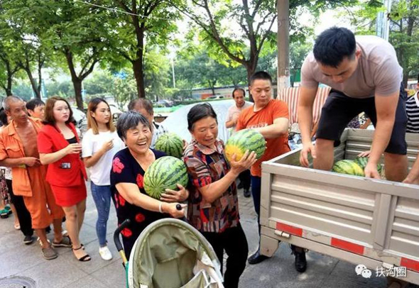 鄭州市民排著長長的隊(duì)伍領(lǐng)取免費(fèi)愛心西瓜,來自咱扶溝的宋鐵托做了一件感動(dòng)家鄉(xiāng)人小事,而這件小事卻上了《人民日報(bào)》。