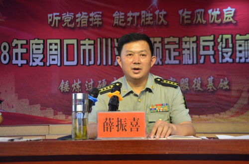 8月17日上午,川匯區(qū)預(yù)定新兵役前教育訓(xùn)練動員會上,周口市征兵辦公室主任、周口軍分區(qū)副司令員薛振喜結(jié)合自身經(jīng)歷,為現(xiàn)場近300名體檢、政審雙合格預(yù)征青年上了一堂生動的國防教育課,現(xiàn)場掌聲雷動。