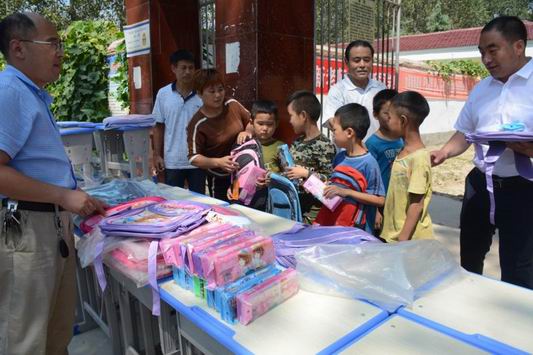 “我們這個(gè)小學(xué)是建校幾十年的老學(xué)校,很多桌凳都很破舊了。這不,剛剛開學(xué),村里幫 扶企業(yè)就給俺送來了課桌凳、書包文具,電腦桌、檔案柜,現(xiàn)在國家扶貧政策就是好。你 看,這些學(xué)生都很高興,我們學(xué)生雖然不多一定要用心教學(xué),以實(shí)際行動(dòng)報(bào)答社會(huì)的關(guān)愛 ......”校長任海峰感激之情溢于言表。