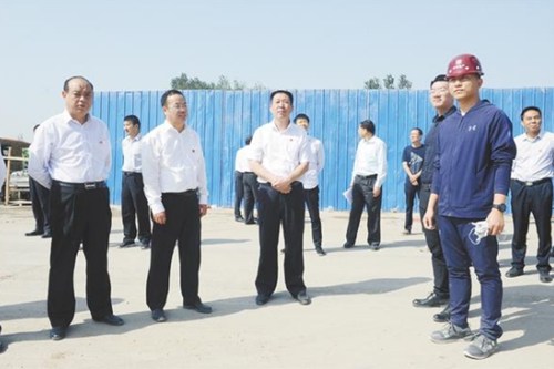 當(dāng)天上午,閆立超、張建黨一行先后來到貴和家園、聯(lián)營職專新校區(qū)、建業(yè)世悅府、乾和家園、萬達城市綜合體、仁和家園(西區(qū))、圣樺城市綜合體等12個項目施工現(xiàn)場進行觀摩。每到一處,閆立超、張建黨一行都詳細聽取項目負責(zé)人的匯報,對施工過程中遇到的困難和問題進行現(xiàn)場研判,現(xiàn)場提出解決方案。