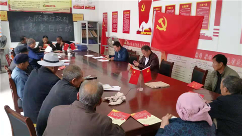 “我志愿加入中國(guó)共產(chǎn)黨,擁護(hù)黨的綱領(lǐng),遵守黨的章程,履行黨員義務(wù)……”在汲水鄉(xiāng)張嶺行政村室,汲水鄉(xiāng)黨委副書(shū)記王申帶領(lǐng)全體黨員面對(duì)黨旗,一起重溫入黨誓詞,并學(xué)習(xí)黨章黨規(guī)。