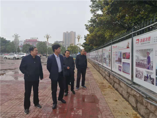 11月8日,記者節(jié)。由鄲城縣總工會主辦、縣文聯(lián)和鄲城時訊報承辦的《決戰(zhàn)決勝——鄲城縣脫貧攻堅工作掠影》大型圖片展,匯聚了全縣各條戰(zhàn)線記者日常采訪的精彩圖片,在縣委門前廣場精彩展出。鄲城縣委副書記、政法委書記崔衛(wèi)國,縣委常委、組織部長侯磊,縣委常委、宣傳部長吳青鋒,縣總工會主席王超一同觀看展覽,并特別向奮戰(zhàn)在新聞戰(zhàn)線、脫貧攻堅戰(zhàn)線的記者們表示祝賀。