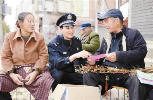 為增強(qiáng)農(nóng)村留守老人防電信詐騙意識(shí),11月15日,扶溝縣公安局固城派出所民警深入轄區(qū),向留守老人詳細(xì)講解當(dāng)前電信詐騙慣用的手段和預(yù)防的主要方法。 記者 謝永靜 通訊員 李龍喜 攝