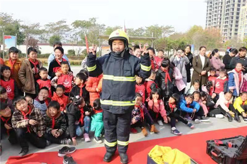 在消防隊(duì)員的引導(dǎo)下,師生們先后參觀了消防車輛和特勤消防器材。隊(duì)員詳細(xì)地介紹了各執(zhí)勤戰(zhàn)斗車輛及隨車器材的功用,以及一些常用的器材裝備性能、參數(shù)、用途和使用方法,并讓小朋友試穿了消防戰(zhàn)斗服,體驗(yàn)消防員出警時(shí)的裝備。