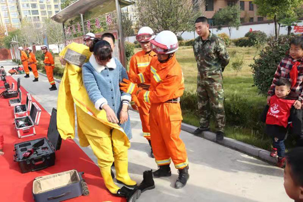 為持續(xù)推進“119消防宣傳月”活動,提高在校師生的消防安全意識和自防自救能力,11月20日,鄲城縣城關(guān)鎮(zhèn)羅堂小學(xué)100余名師生走進鄲城消防大隊營區(qū),零距離體驗消防員生活,學(xué)習(xí)消防安全知識。圖為消防隊員幫助小學(xué)生試穿消防戰(zhàn)斗服。