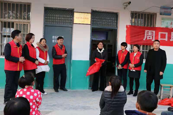 據(jù)了解,楊莊小學(xué)目前有學(xué)生150多名,由于學(xué)校圖書非常緊缺,學(xué)生們的日常學(xué)習(xí)生活非常單調(diào)。今年11月8日,周口助夢(mèng)公益團(tuán)負(fù)責(zé)人在王凱偉回鄉(xiāng)探親之際,到該校為師生講解交通安全知識(shí)時(shí),了解到學(xué)校的情況,便發(fā)動(dòng)公益團(tuán)成員積極為楊莊小學(xué)捐助圖書,并建立全市首座“助夢(mèng)愛(ài)心書屋”。
