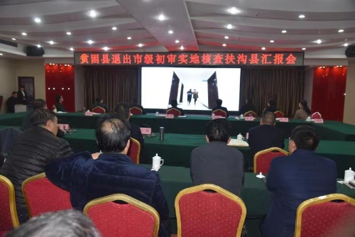 12月3日,貧困縣退出市級初審實地核查扶溝縣匯報會召開。市級初審第一實地核查組組長劉哲,副組長毛立營、王啟輝、李濤、齊長軍、陳強,監(jiān)督員周萌,聯絡員豆筱倩,扶溝縣領導盧偉、張峰、段然、趙紅亮等出席會議。縣委副書記、政法委書記張峰主持會議。