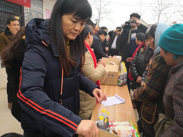 副縣長(zhǎng)喬偉講話。商務(wù)局局長(zhǎng)李曉紅、清集鎮(zhèn)常委書記吳文靜對(duì)開(kāi)展本次活動(dòng)的目的,意義及有關(guān)扶貧政策做了講解?;顒?dòng)由清集鎮(zhèn)鎮(zhèn)長(zhǎng)許世杰主持。本次慰問(wèn)給桂崗村貧困戶送來(lái)餃子300件,食用醋300件?!罢肜照嬷艿窖?,這在以前想都不敢想,真心的感謝政府,感謝現(xiàn)在的好政策。”一位剛領(lǐng)到餃子的老黨員感動(dòng)地說(shuō)。
