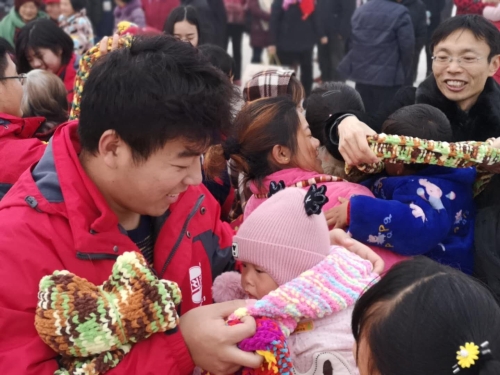 在觀看了一段歡快的舞蹈表演后,與會領導為獲獎家庭頒獎,并和志愿者們一起為孩子們戴上了圍巾,現(xiàn)場數(shù)百名群眾報以陣陣熱烈掌聲。