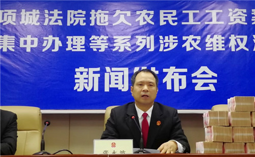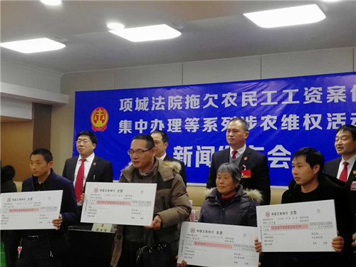 “感謝項(xiàng)城法院的領(lǐng)導(dǎo),他們一心為民,克服種種困難,幫助我們要回了血汗錢。”12月24日,項(xiàng)城法院拖欠農(nóng)民工工資案件集中辦理等系列涉農(nóng)維權(quán)活動(dòng)新聞發(fā)布會(huì)在該院召開,16名涉農(nóng)維權(quán)案件當(dāng)事人從項(xiàng)城法院黨組成員、院長張永波的手中接過索要許久的血汗錢,喜極而泣。