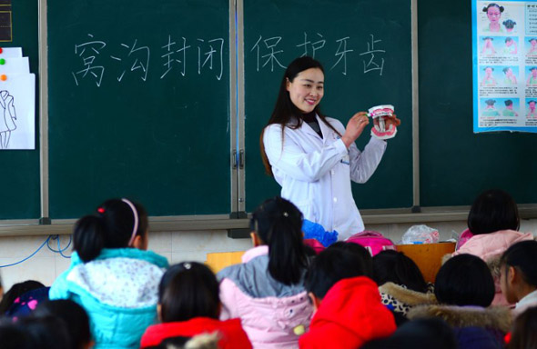 為加強(qiáng)口腔疾病健康教育和健康促進(jìn)工作,提高兒童口腔疾病防治知識知曉率,近日,鄲城縣疾控中心組織口腔專業(yè)技術(shù)人員,到第三實(shí)驗(yàn)小學(xué)開展“鄲城縣健康口腔助成長口腔健康教育活動(dòng)”和“鄲城縣兒童口腔疾病綜合干預(yù)項(xiàng)目進(jìn)校園活動(dòng)”。在活動(dòng)現(xiàn)場,口腔醫(yī)師為二年級學(xué)生上了三場生動(dòng)的口腔健康教育課,詳細(xì)講解口腔疾病防治知識。