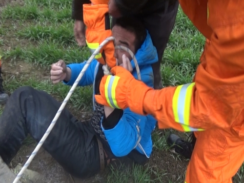 “氣溫很低,而且男子已經(jīng)在井下水里泡了一夜,好在他的意識(shí)還比較清醒?!毕乐嘘?duì)長(zhǎng)李輝說(shuō),經(jīng)過交談,他們采取下繩套的辦法,讓男子自行把手腕伸進(jìn)繩套內(nèi),然后大家齊心協(xié)力把他拉了上來(lái)。