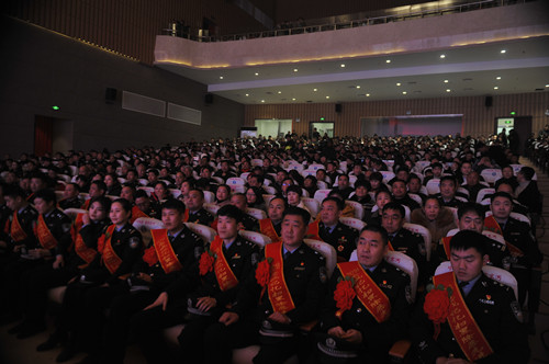熠熠金盾耀新春,崢嶸歲月訴衷腸。1月24日晚,鹿邑縣文化中心大會(huì)堂里座無(wú)虛席,鹿邑縣公安部門在這里隆重舉行“2018忠誠(chéng)記憶”職業(yè)榮譽(yù)頒獎(jiǎng)儀式??h領(lǐng)導(dǎo)李剛、李國(guó)際、雷申、侯自峰、陳巍、何新敏、齊梅英等和公安民警、警屬代表等共千余觀眾在現(xiàn)場(chǎng)共同見證。