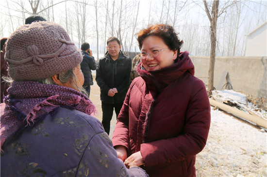 2018年5月11日,張穎波在看望大新鎮(zhèn)陳樓村的困難群眾吳鳳蓮時(shí),曾對她說過一句話,“等你新房蓋好,我再來看你?!保罚稓q的吳鳳蓮把這句話牢牢地記在了心里。一見張穎波的面,拉著手留著淚連聲說:“俺家房早就蓋好了,就一直盼著恁來。我知道恁忙,可就想讓恁看看俺的房……”老人和一位患病的兒子一起生活,去年5月份張穎波來時(shí),她家正因“危房清零”活動(dòng)而扒掉舊房蓋新房。張穎波當(dāng)時(shí)還特意滿足了老人的一個(gè)愿望,安排村干部為她家房內(nèi)專門壘個(gè)隔斷?!拔遥罚岸嗔?,從來沒住過這么好的房、從來沒過過這么好的日子!”新建的三間磚瓦房、一間配套齊全的廚房和壘好的院墻讓老人感慨不已,發(fā)自肺腑地說著黨和政府的好?!袄先思?,我今天就是想看看房子改造的怎樣,也給你拜個(gè)早年?!睆埛f波拉著吳鳳蓮老人的手說:“房子蓋好了,也算了了你的一個(gè)心愿,有黨和政府的幫助,日子會(huì)越來越好。你要照顧好自己和孩子,有啥困難就找村里干部?!?/p>