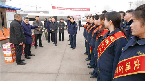 在縣公交公司,皇甫立新首先向全體干部職工致以節(jié)日的問候,對他們一年來為全縣人民安全順利出行做出的貢獻表示感謝。在認真聽取有關(guān)負責(zé)人關(guān)于節(jié)日期間增開班車和車次的匯報后,皇甫立新說,公交車作為公共交通運輸體系中的重要組成部分,不僅在完善城市交通運輸格局、方便市民出行方面發(fā)揮著重要作用,同時也是城市形象的象征。希望堅守崗位的公交職工要繼續(xù)提供優(yōu)質(zhì)服務(wù),文明安全駕駛,為居民在春節(jié)期間走親訪友和安全出行提供方便、搞好服務(wù),展示出沈丘公交公司員工的良好素質(zhì)和良好形象。并叮囑公交公司負責(zé)人要合理安排好職工的工作和生活,為廣大一線工作人員安心工作提供堅實的后勤保障,讓他們更加舒心愉快地服務(wù)廣大群眾。