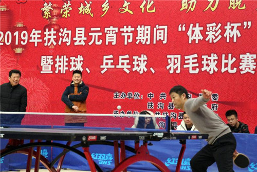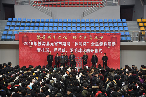 2月17日上午,元宵佳節(jié)即將來臨之際,在全縣脫貧攻堅(jiān)沖刺的關(guān)鍵時期,扶溝縣2019年元宵節(jié)“體彩杯”全民健身展示暨排球、乒乓球、羽毛球比賽活動在縣體育館隆重開幕?;顒又荚谪S富全縣廣大人民群眾的文化生活,助力脫貧攻堅(jiān),為實(shí)現(xiàn)“五個扶溝”增光添彩??h委常委、宣傳部長馬昭才,副縣長吳興華等出席開幕式??h委宣傳部副部長張根主持開幕式。