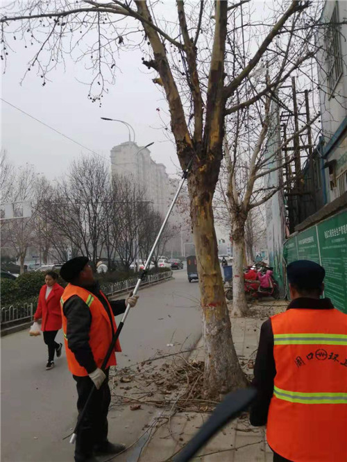 2月26日上午,為避免枯枝墜落傷人,有關(guān)部門派出人員在慶豐路與中原路交叉口東側(cè)清理行道樹(shù)枯枝。