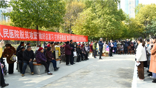 運(yùn)動會共設(shè)四個(gè)項(xiàng)目:你演我猜、踩氣球、搶凳子和蒙眼擊鼓。講究默契的你演我猜,團(tuán)隊(duì)協(xié)作的踩氣球,笑料百出的蒙眼擊鼓,讓整個(gè)賽場充滿著歡聲笑語。激烈的比賽也引來了患者及家屬的圍觀,他們也被這歡樂的氣氛感染,臉上綻放出了笑容。在競爭激烈的搶凳子比賽中,主持人加入了知識問答環(huán)節(jié),沒搶到凳子的要回答主持人提出的扶貧措施問題,隨著一個(gè)個(gè)參賽者被淘汰,醫(yī)院的各項(xiàng)扶貧措施也給圍觀者們留下了深刻的印象。