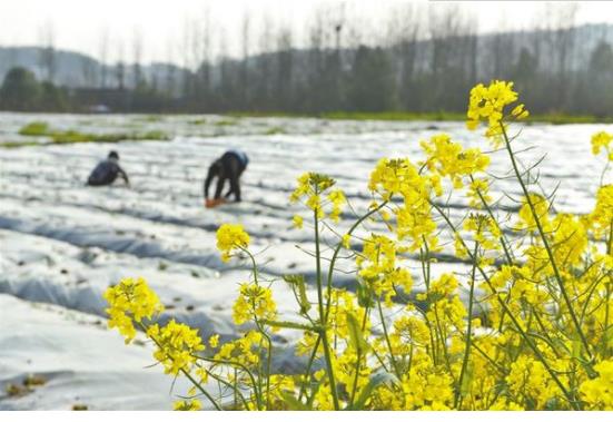 3月11日,農(nóng)民正在蔬菜基地勞作。隨著天氣回暖,各地農(nóng)民搶抓農(nóng)時,在田間地頭伴著花香進(jìn)行春耕生產(chǎn)。李建新 攝