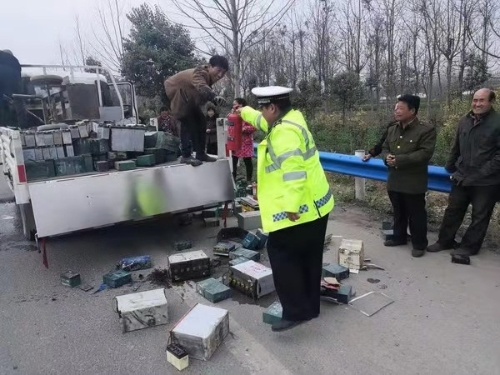 3月13日下午14時(shí)45分,鄲城縣交警大隊(duì)治超中隊(duì)民警張?chǎng)螏ш?duì)在汲冢萬(wàn)樓卡點(diǎn)執(zhí)勤時(shí),一名女司機(jī)將車輛停靠在萬(wàn)樓卡點(diǎn),急急忙忙下車向張?chǎng)吻笾Q在萬(wàn)樓執(zhí)勤卡點(diǎn)東2公里路北處,一輛拉有電瓶的貨車因電瓶連線導(dǎo)致后車廂著火,司機(jī)和同行人員急得在路邊直哭。
