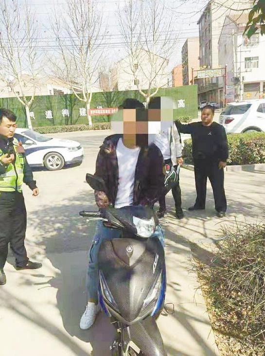 3月16日15時許,鄲城縣交警大隊治超中隊民警巡邏至公園東路時,發(fā)現(xiàn)兩名小伙子駕駛“炸街摩托”開得飛快,險象環(huán)生。執(zhí)勤隊長何濤立即指令前方巡邏民警布置錐筒和警示牌進行攔截。經(jīng)過一番努力,執(zhí)勤民警終于將兩輛“炸街摩托”攔停。