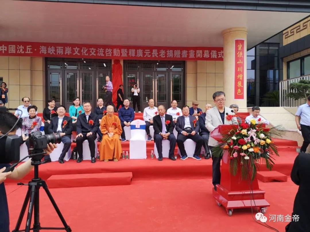 釋廣元長老在致辭中說,多年來雖身在臺灣,卻時刻心系故土,為推動兩岸同胞心靈契合、深化兩岸文化交流中貢獻自己的綿薄之力。希望此次無條件捐贈的藝術(shù)館古今名家書畫數(shù)百幅,能為家鄉(xiāng)文化建設(shè)貢獻微薄之力。同時提議將釋廣元藝術(shù)館更名為“沈丘藝術(shù)館”,為沈丘文化的發(fā)展繁榮注入新的生機和活力。