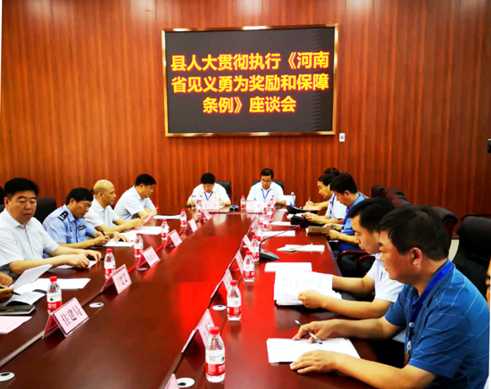 執(zhí)法檢查組召開座談會,聽取縣政府及相關部門關于貫徹實施《河南省見義勇為人員獎勵和保障條例》情況的匯報。部分市縣人大代表就貫徹執(zhí)行《條例》提出了一些意見和建議,檢查組對全縣落實《條例》情況給予充分肯定。