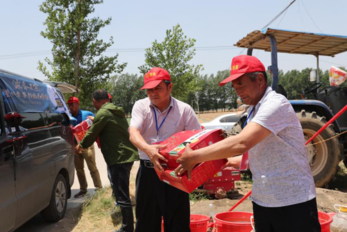 6月3日,個體企業(yè)家宗紅軍為禁燒工作人員送來怡寶純凈水100件。