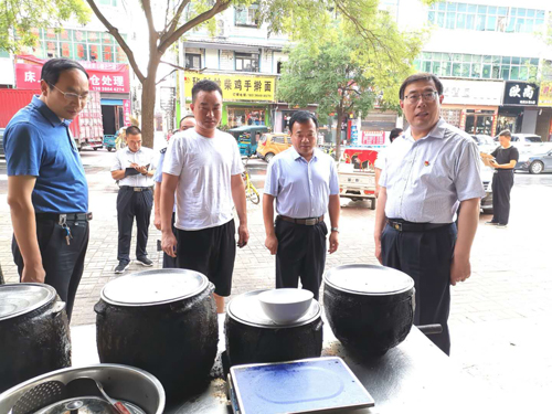 在新城路沿街門店,馬衛(wèi)東邊走邊看邊聽取有關(guān)負(fù)責(zé)人的情況介紹,對存在和現(xiàn)場發(fā)現(xiàn)的的問題逐一梳理分析,并及時(shí) 提出整改意見。