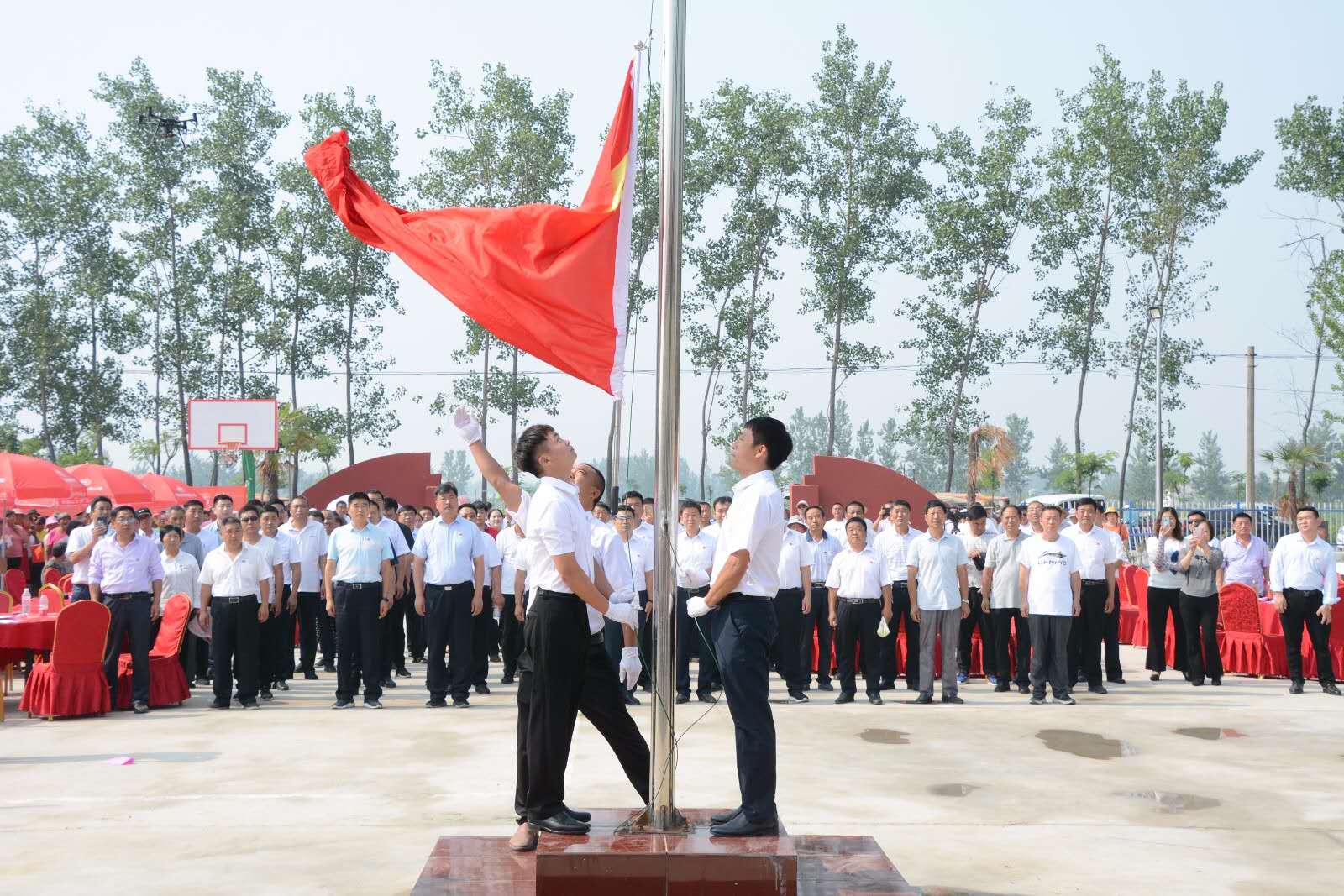 活動在莊嚴(yán)的升國旗儀式中拉開帷幕。由紀(jì)莊黨支部護(hù)旗手昂首闊步,迎著朝陽、護(hù)著國旗走向升旗臺,在場全體黨員、干部、群眾注視下,伴隨著震撼人心、氣勢磅礴的國歌完成了升旗儀式。
