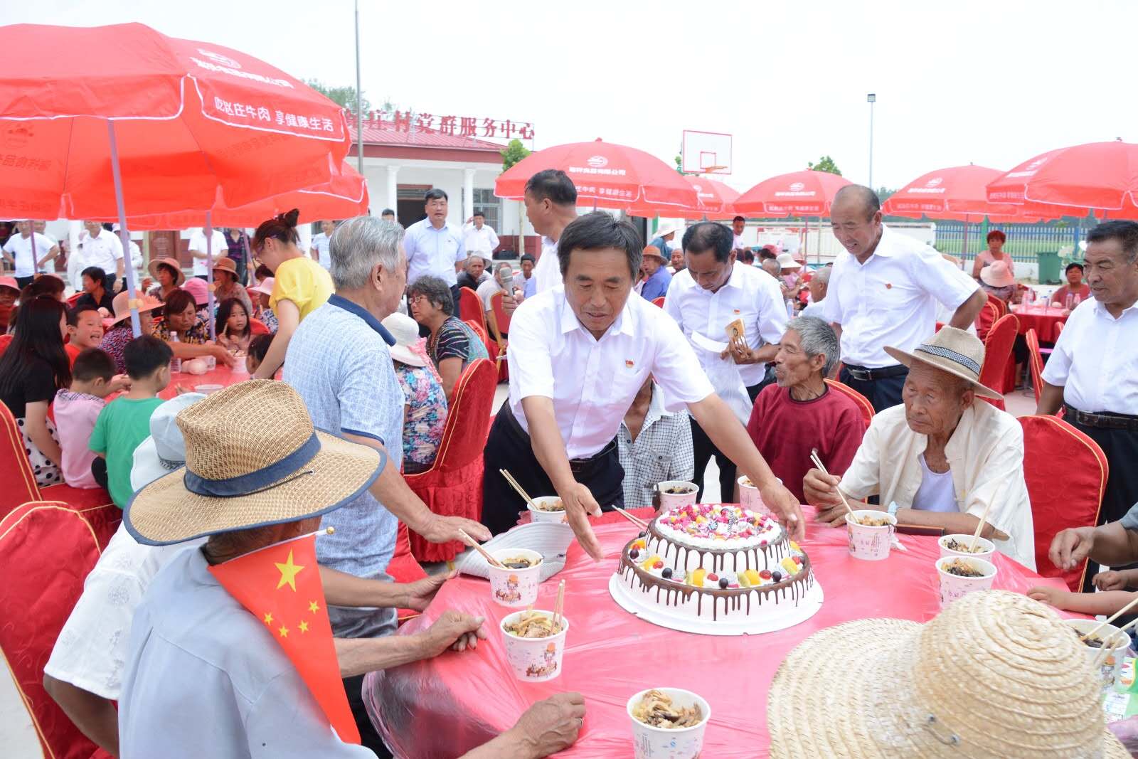 文藝演出結(jié)束后,參會黨員群眾歡聚一堂,共進(jìn)午餐。紀(jì)莊村黨支部書記攜全體黨員干部共同為當(dāng)月過生日的老黨員史海汕同志送上生日蛋糕,并一起聆聽老黨員的心路歷程,史海汕同志感慨地表述:“我在紀(jì)莊村生活了78年,這是我過的最好的一次生日,通過匯演我看到了鎮(zhèn)全體黨員、干部群眾們的愛國、愛黨、愛崗情懷,雖然我老了,可我的初心依舊,我愿為中國共產(chǎn)黨奮斗終身,為我們紅花集鎮(zhèn)鄉(xiāng)村振興添磚加瓦?!?/p>