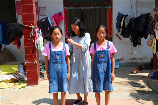 這次來看望“女兒”,王冬特意給小姐妹倆購買了幾件新衣服、鞋和一些書籍。穿上新衣服和鞋子,姊妹倆高興得手舞足蹈。“王老師,你待她們給親閨女一樣,每次來都不忘給她們買東西。我們真不知道向你說啥好了?!笨粗鴤z孫女被王冬打扮的如此美麗好看,王肖晴的爺爺王客臣感動得連連向王冬道謝。
