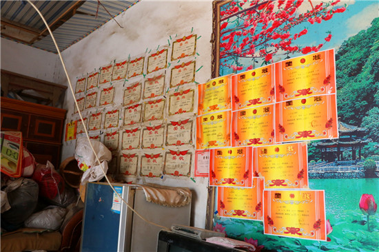 7月28日星期天,是王冬去看兩名"女兒"的時間。小姐妹家的院子不大,但被收拾得干干凈凈。屋內(nèi)擺放著一臺21英寸舊電視和一臺冰箱,但都是13年以前購買的。屋子北墻上貼滿了獎狀,十分惹眼,“倆孩子都爭氣,每次都拿獎,這些獎狀都是著她們學習掙來的?!蓖踝忧绲哪棠逃檬种钢鴫ι系莫劆钭院赖卣f。
