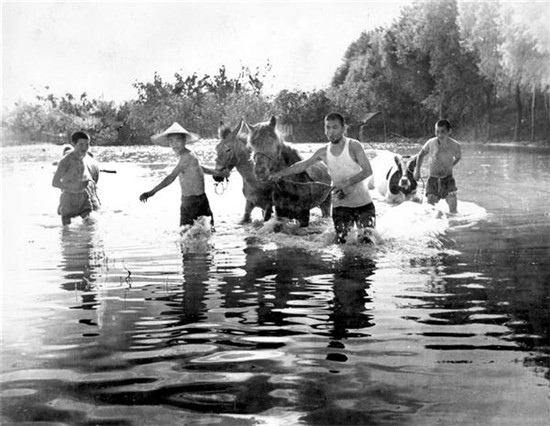 “75·8”大洪水西華、項(xiàng)城受災(zāi)最為嚴(yán)重,災(zāi)區(qū)的村民把牲畜趕到大堤上。(圖片來源:劉明和)