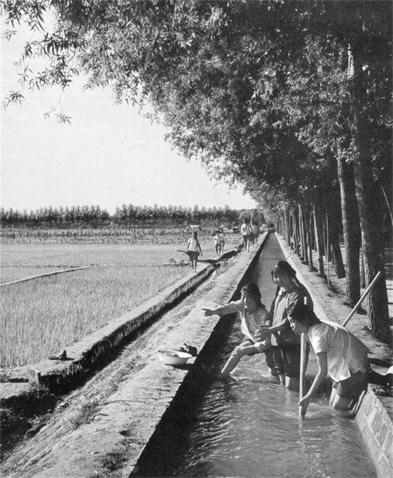 1975年6月,商水到周口公路兩邊的農(nóng)業(yè)水利干渠。 上世紀(jì)70年代,大批上海知識(shí)青年來到周口、商水、淮陽,進(jìn)行“上山下鄉(xiāng)”鍛煉,他們?cè)谏趟酶汕喔忍攸c(diǎn)試驗(yàn)種植水稻?,F(xiàn)在,淮陽縣檔案館還存有一批知青報(bào)到的花名冊(cè)。 (圖片來源:圖書《Former yellow river flood area transformed》中文名《黃泛區(qū)變化》)