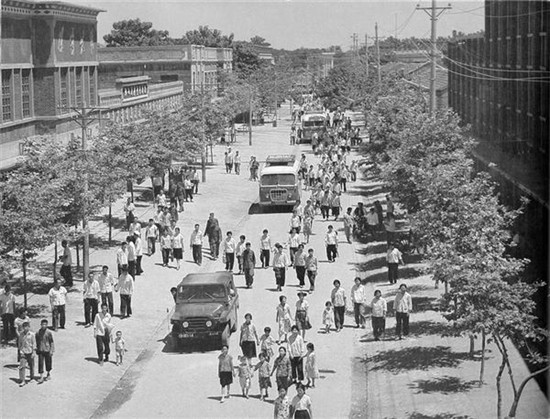 1975年6月,西華縣城唯一的一條硬化路面大街,現(xiàn)在的箕城路。 1975年5月,新華社一名攝影記者來到河南,從鄭州花園口到周口商水、西華、太康、扶溝、淮陽,歷時(shí)一個(gè)半月采訪拍攝黃泛區(qū)現(xiàn)狀。途徑地政府安排當(dāng)?shù)財(cái)z影家與其共同拍攝,周口攝影家葛慶亞、李中華、岳獻(xiàn)甫參與了拍攝。受政治環(huán)境影響,這批圖片推遲到1979年才集結(jié)成冊(cè),由外文出版社分英文、法文、西班牙文三種語言出版。當(dāng)時(shí),外文出版社隸屬出版總署,由中共中央宣傳部領(lǐng)導(dǎo),出版了大量的外宣圖書贈(zèng)送外國駐華領(lǐng)事館。 (圖片來源:圖書《Former yellow river flood area transformed》中文名《黃泛區(qū)變化》)