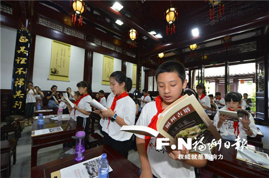 “我宣誓,保護(hù)福州古厝,傳承歷史文脈,從小做起,從我做起!”19日上午,由福州日報(bào)和福州市教育局聯(lián)合舉辦的“探訪總書記牽掛的福州古厝”夏令營活動(dòng)在鰲峰書院啟動(dòng)。