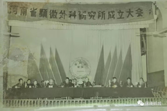1983年河南省人民政府決定在鄲城縣建立河南省顯微外科研究所(圖為成立大會(huì))。1984年省衛(wèi)生廳撥款58.6萬(wàn)元在醫(yī)院內(nèi)建設(shè)河南省顯微外科研究樓。