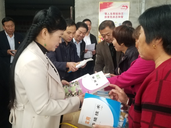 當天,淮陽縣職業(yè)中專正在借助河南省科技特派員科技專項扶貧平臺,組織豆門鄉(xiāng)紅山村百余名建檔立卡貧困戶學員進行為期15天的高效種植、健康養(yǎng)殖技術培訓。在河南省科技特派員、周口職業(yè)技術學院趙慶楓博士的引薦下,民盟周口市委的楊彥濤委員、三支部主委王春華、文化教育支部主委任東升趕到現(xiàn)場為大家“傳經(jīng)送寶”。從種植增收致富到養(yǎng)殖奔小康,從關鍵技術到惠農(nóng)政策,從園林園藝技術到農(nóng)產(chǎn)品的銷售,專家們講得用心,學員們聽得認真。