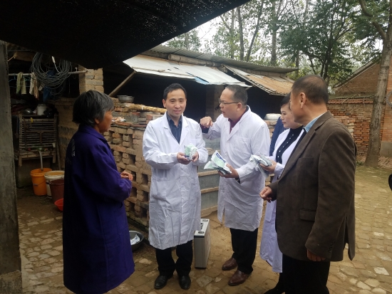 在紅山村豆莊建檔立卡貧困戶牛書山的波爾山羊養(yǎng)殖場,民盟專家組向牛書山贈送了科學養(yǎng)羊書籍和營養(yǎng)獸藥。針對一些圈養(yǎng)羊群出現(xiàn)的不良現(xiàn)象,河南省科技特派員趙慶楓博士從當前羊病的防治、羊群密度、羊的飼養(yǎng)管理等多方面進行了詳細解答和指導。豆莊村村民豆勇身患尿毒癥因病致貧,妻子想通過養(yǎng)雞產(chǎn)業(yè)致富,楊彥濤委員鼓勵她貧困不能失志,做到“弱鳥”先飛,靠養(yǎng)殖增收致富,引導她要想強身健體,“造血”比“輸血”效果好。趙慶楓博士給她家送來防病治病藥物,并向她詳細傳授了大棚內柴雞養(yǎng)殖技術及疫病防控要點。村民們激動地說,這樣的扶貧真正扶到了鄉(xiāng)親們的心坎上。