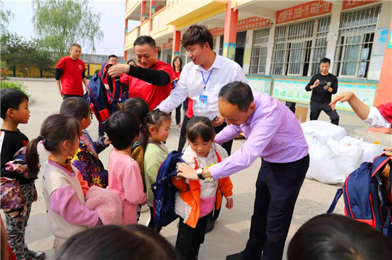 當(dāng)日上午,周大福集團(tuán)組織了15名員工組成義工隊,在周口區(qū)域負(fù)責(zé)人王保安的陪同下,帶著總價值3萬余元的300套愛心物資,送到學(xué)生手中。現(xiàn)場,他們與學(xué)生愛心互動、親切交流,為學(xué)生們背上書包、送上文具,關(guān)心學(xué)生生活和學(xué)習(xí)情況。當(dāng)了解到學(xué)校資金緊張,師生還沒有統(tǒng)一服裝時。岳磊等人表示,將向上級申請,下一步積極為該校師生解決工作裝和校服問題。對此,徐莊小學(xué)師生熱烈鼓掌表示感謝。