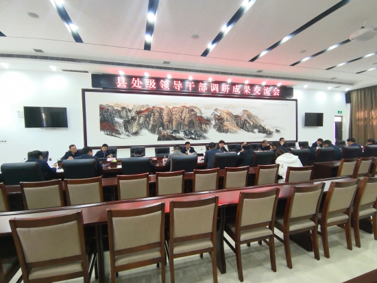 10月29日,扶溝縣召開處級領(lǐng)導(dǎo)干部調(diào)研成果交流會和縣委理論學(xué)習(xí)中心組對照黨章黨規(guī)找差距專題會。縣處級領(lǐng)導(dǎo)干部就調(diào)研發(fā)現(xiàn)的問題、提出的思路和解決的辦法進(jìn)行總結(jié)交流,對照黨章黨規(guī)查找自身存在的突出問題,進(jìn)行檢視整改,將主題教育轉(zhuǎn)化為解決問題的具體行動??h委副書記、縣長張穎波主持會議。
