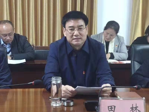 縣委副書記、縣長、縣委主題教育領(lǐng)導小組組長田林匯報全縣主題教育工作開展情況。