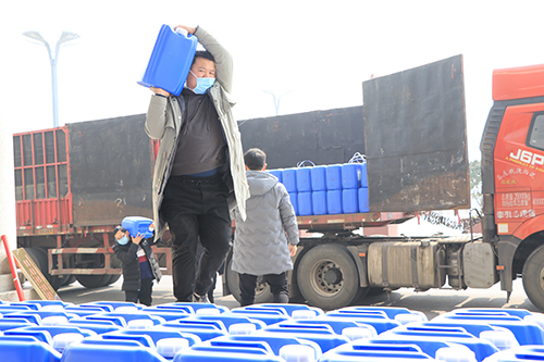 該公司總經(jīng)理馬媛媛介紹,她老家是周口的,在鄭州開(kāi)辦的公司,公司業(yè)務(wù)主要是搞醫(yī)療物質(zhì)配送?!爱?dāng)前嚴(yán)峻的疫情形勢(shì)真得讓人很擔(dān)心,為了能夠給家鄉(xiāng)提供一些力所能及的幫助,公司特意購(gòu)置了這批醫(yī)用物質(zhì)以解家鄉(xiāng)防控疫情的燃眉之急?!瘪R媛媛介紹,為了能在市場(chǎng)上購(gòu)到這批貨物,公司從除夕晚上就開(kāi)始聯(lián)系貨物,打了近百個(gè)電話,直到大年初四才在山東的一家公司聯(lián)系到貨源,排了6天隊(duì)之后,才購(gòu)到10000斤消毒液、4000副醫(yī)用手套,貨到之后,公司馬不停蹄,立即拉了過(guò)來(lái),讓這批貨物盡快派上用場(chǎng)。