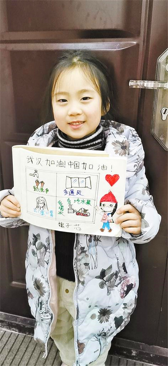 周口六一路小學(xué)近日布置了一項(xiàng)作業(yè),要求學(xué)生設(shè)計(jì)一張防疫宣傳小報(bào),為武漢加油。該校學(xué)生用漫畫(huà)的形式呼吁大家勤洗手、戴口罩、多喝水、多通風(fēng)。記者 王晨 通訊員 李琨 攝