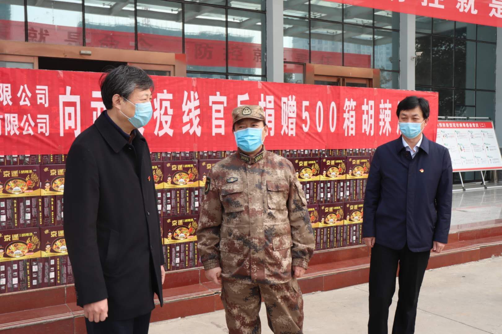 為助力解放軍官兵抗“疫”工作,2月24日上午,東方時(shí)尚(西華)機(jī)場(chǎng)有限公司,向武漢抗(疫)前線(xiàn)官兵捐贈(zèng)價(jià)值一萬(wàn)余元的胡辣湯料。周口軍分區(qū)司令員王善沖,西華縣委書(shū)記林鴻嘉,常務(wù)副縣長(zhǎng)王獻(xiàn)超,西華縣人武部部長(zhǎng)錢(qián)瑞、政委涂友佳,親臨捐贈(zèng)現(xiàn)場(chǎng)。