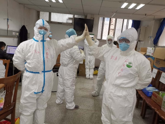 3月3日,周口市第三批援鄂醫(yī)療隊慷慨出征,這支醫(yī)療隊由周口港區(qū)醫(yī)院8位醫(yī)護人員組成,當(dāng)晚抵達(dá)武漢,經(jīng)過幾個小時的培訓(xùn),對專業(yè)防護流程進行了優(yōu)化。第二天,周口港區(qū)醫(yī)院醫(yī)療隊正式進駐武漢商職醫(yī)院,當(dāng)天下午開展新冠肺炎患者的救治和護理工作。