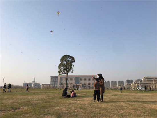 3月20日,周口天氣晴朗,最高氣溫27℃,東風3-4級。在市公安局南草坪廣場,市民帶著口罩,在空曠的場地放風箏、曬太陽,享受春光。